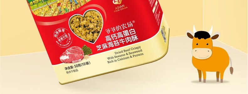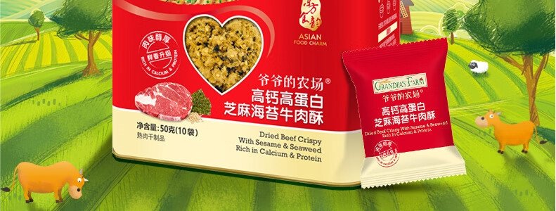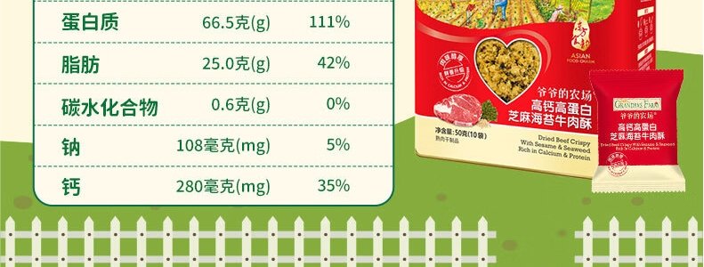 商品名称:法国 爷爷的农场(Grandpa's Farm)芝麻海苔高蛋白牛肉酥 50g