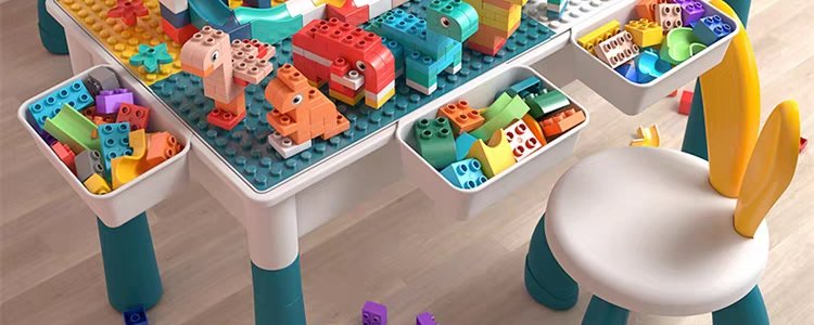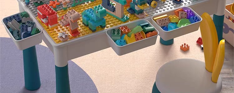 星涯优品 儿童多功能大积木桌 积木桌*1+萌兔椅*1+滑道积木*142+大颗粒*300