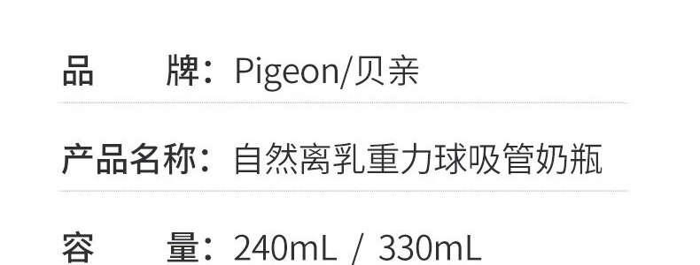 商品名称:日本 贝亲(Pegion)经典款自然离乳重力球吸管奶瓶 240ml 6月+ AA252