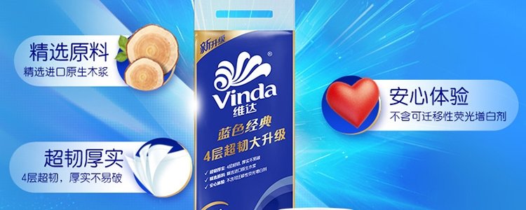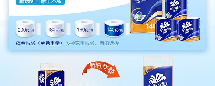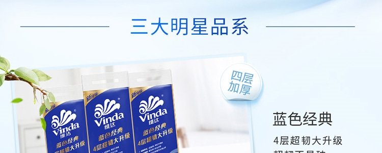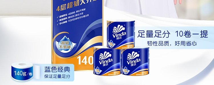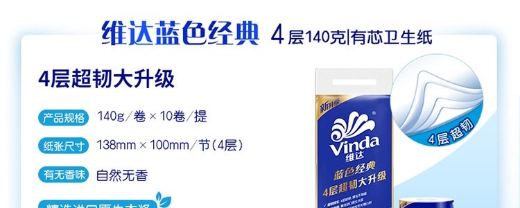 商品名称:维达(vinda)蓝色经典卫生纸 140g*10卷