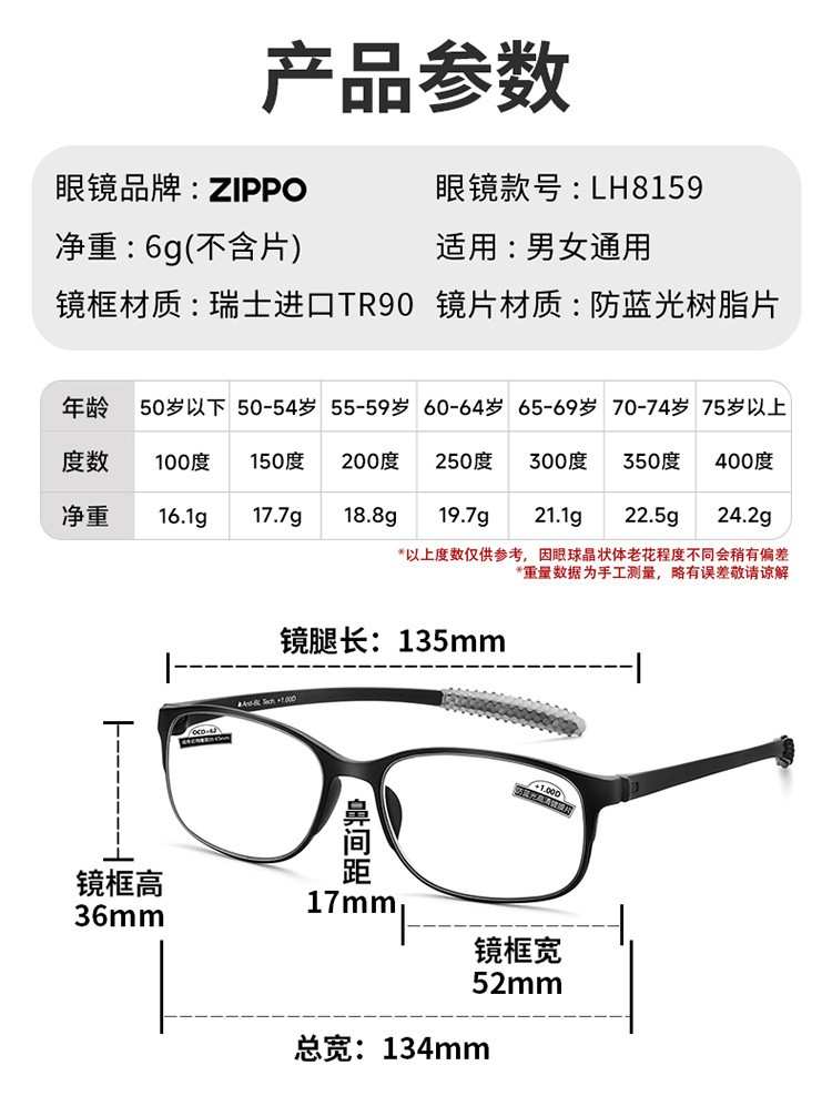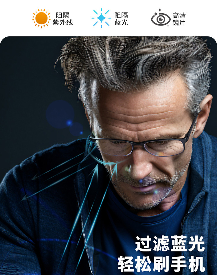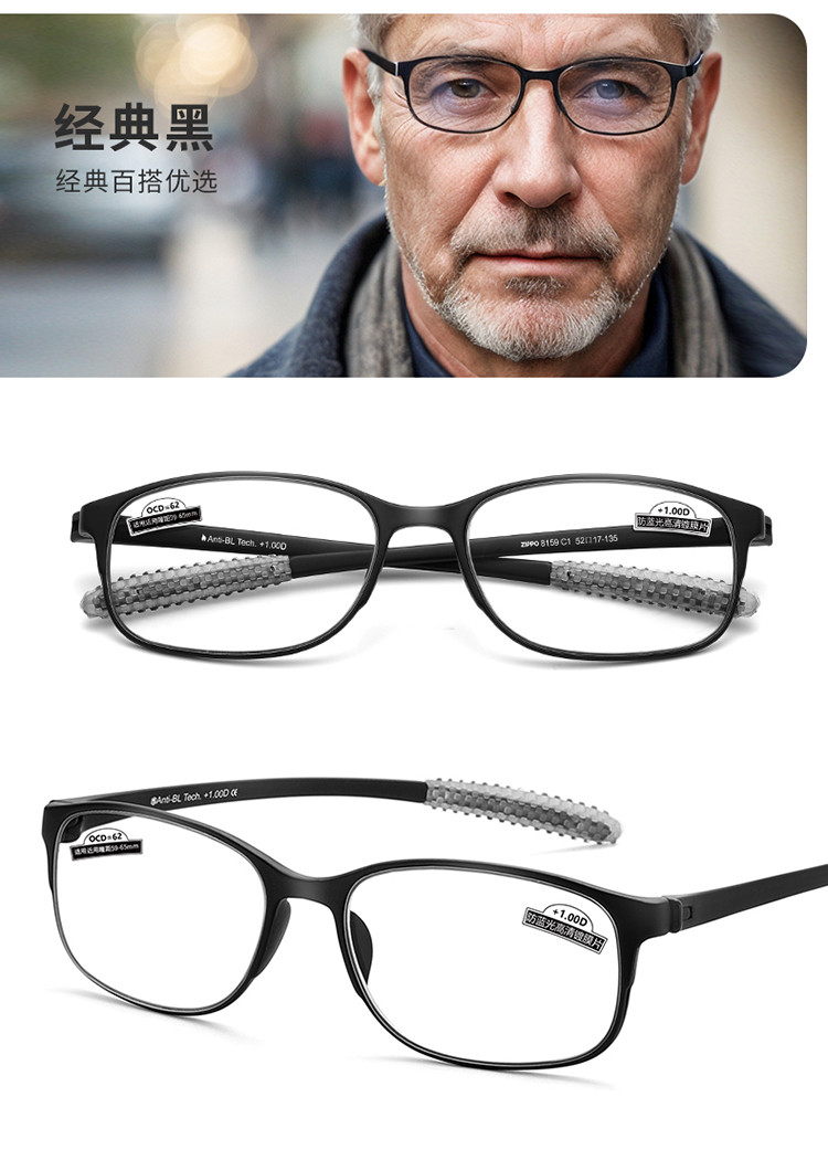 商品名称:老花镜男高清防蓝光超轻时尚显年轻老光老人老花眼镜 589662