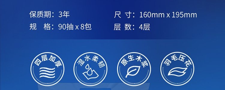 商品名称:得宝(Tempo)抽取式面巾纸 90抽*6+2包