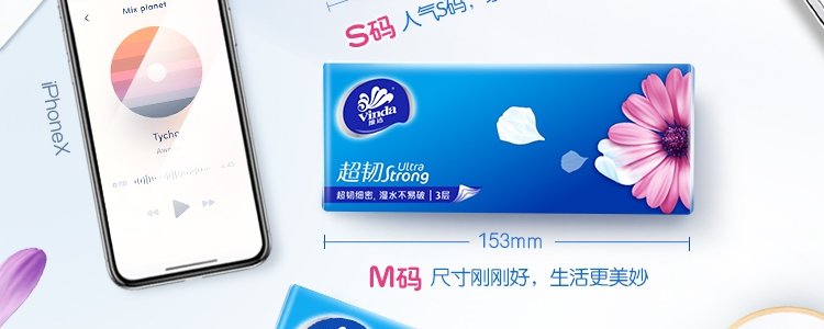 商品名称:维达(vinda)超韧3层抽纸 S码 130抽*6包