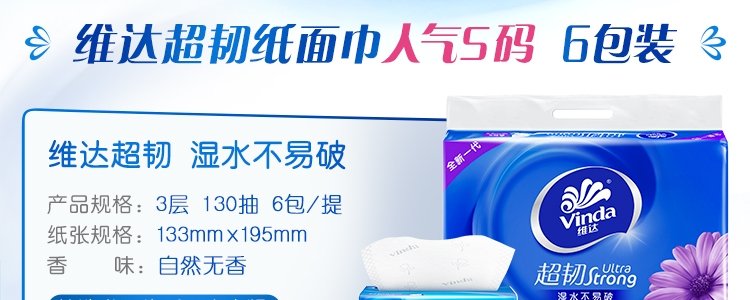 维达(vinda)超韧3层抽纸 S码 130抽*6包