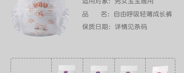 商品名称:德国 BBU 自由呼吸轻薄款拉拉裤 L40(9-14kg)