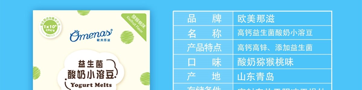 商品名称:欧美那滋(omenas)高钙益生菌酸奶小溶豆(蓝莓味)18g