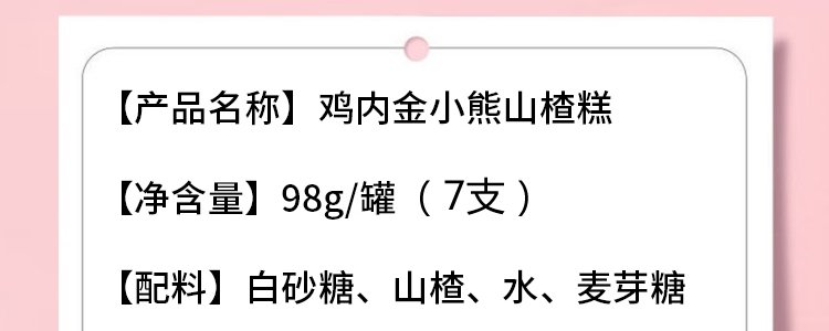 商品名称:朗小贝 鸡内金小熊山楂糕罐装 98g*2罐