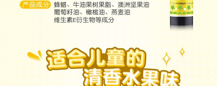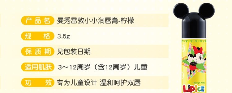 商品名称:日本 曼秀雷敦(Mentholatum)儿童润唇膏 柠檬味 3.5g