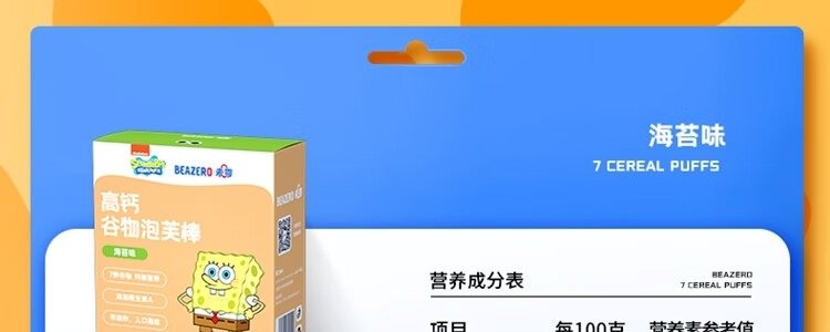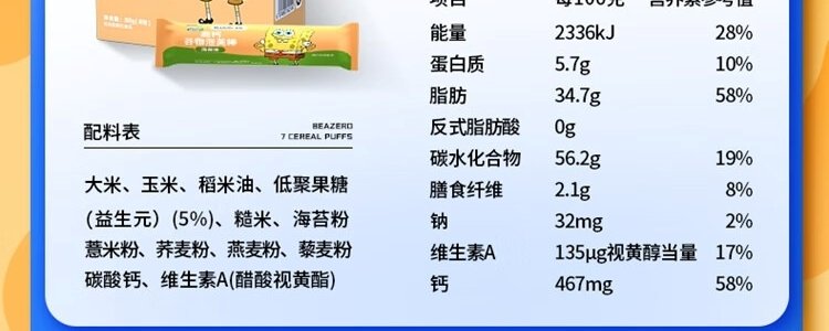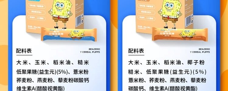 商品名称:海绵宝宝 谷物泡芙棒 原味 32g