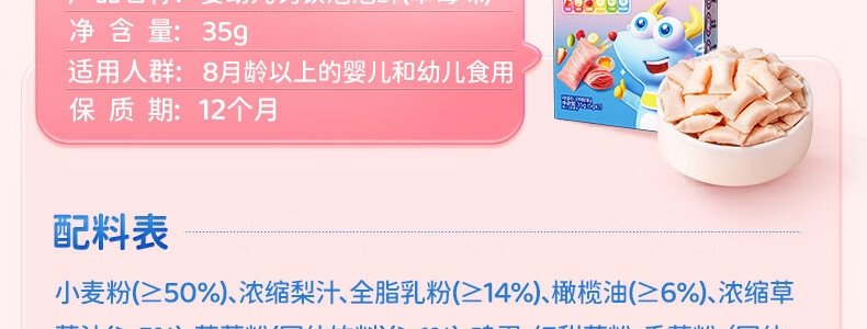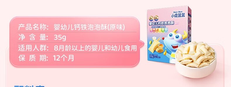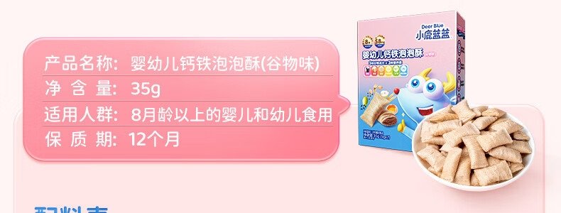 商品名称:小鹿蓝蓝 婴幼儿钙铁泡泡酥 谷物味 35g