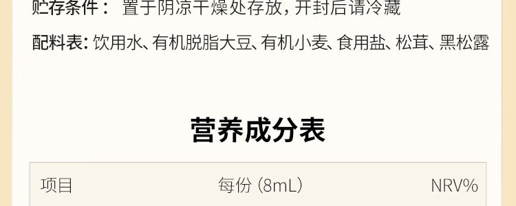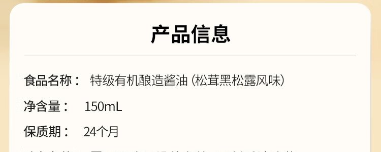 商品名称:秋田满满 特级有机酿造酱油(松茸黑松露风味)150ml