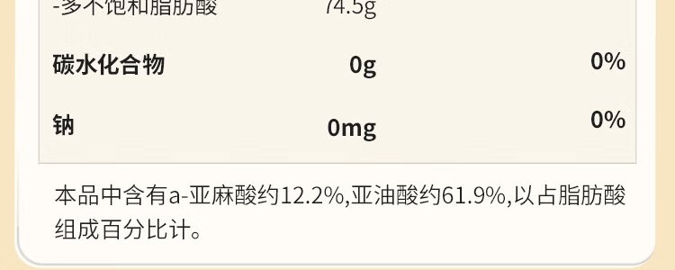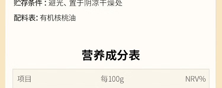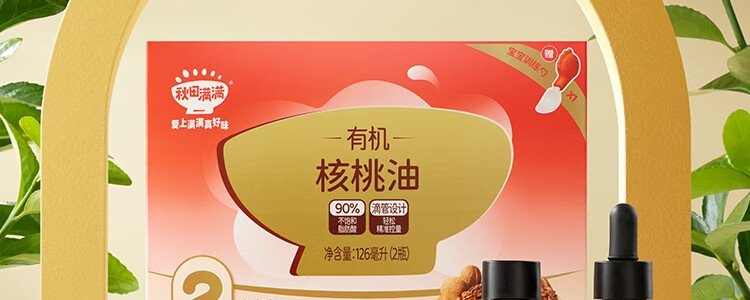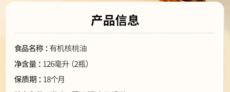商品名称:秋田满满 有机核桃油 彩盒装 126ml 包装随机