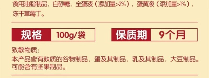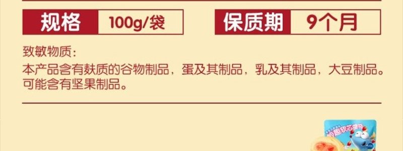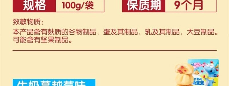 商品名称:小鹿蓝蓝 软芯曲奇牛奶蔓越莓味 100g