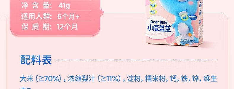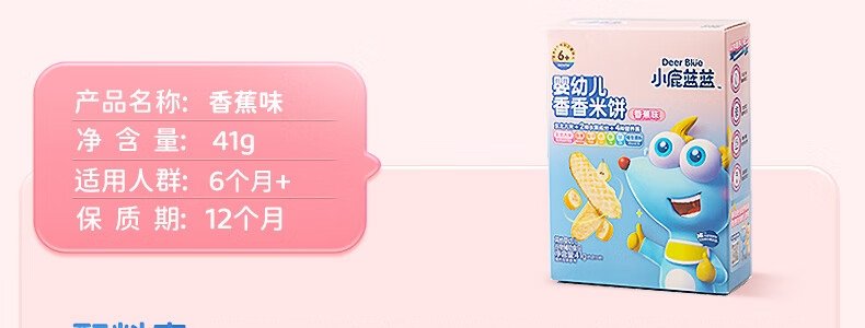 商品名称:小鹿蓝蓝 婴幼儿香香米饼 香蕉味 41g 新旧包装随机发货