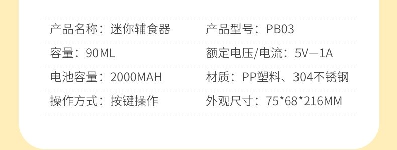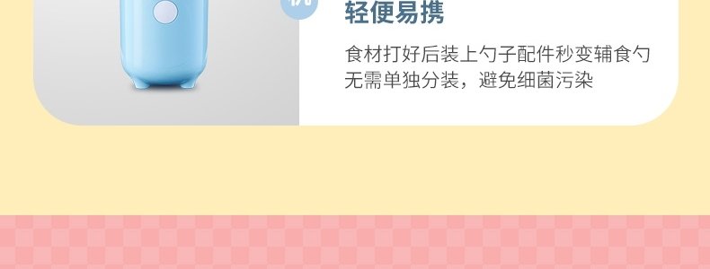 商品名称:蓓比舒 宝宝便携充电式迷你料理辅食机 辅食机米糊勺二合一
