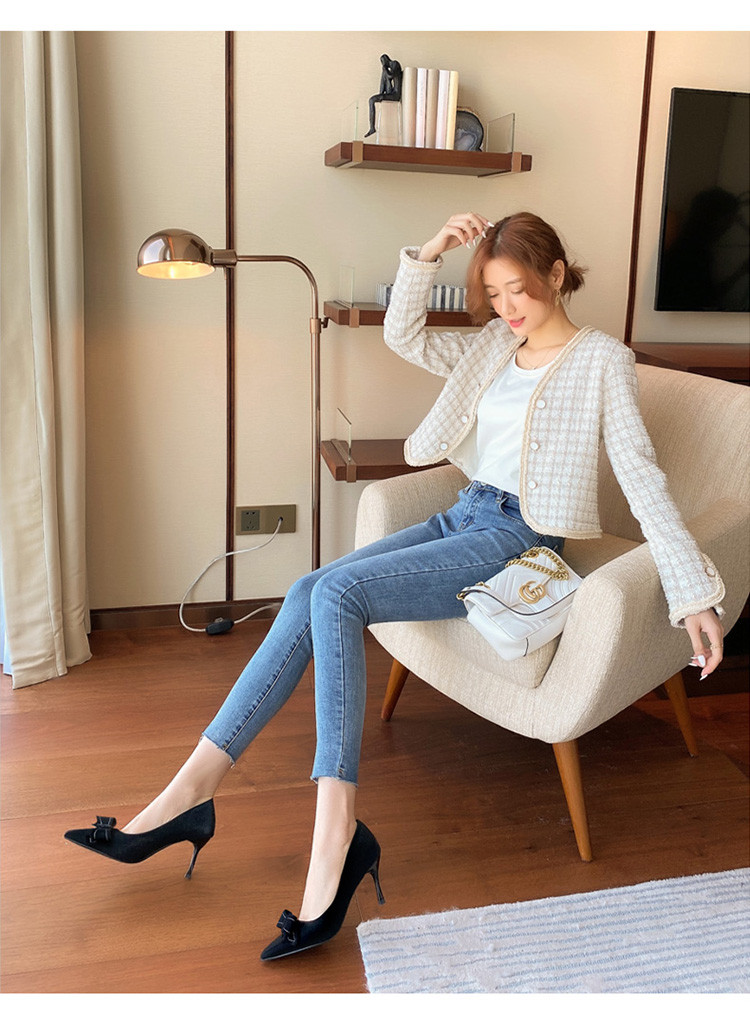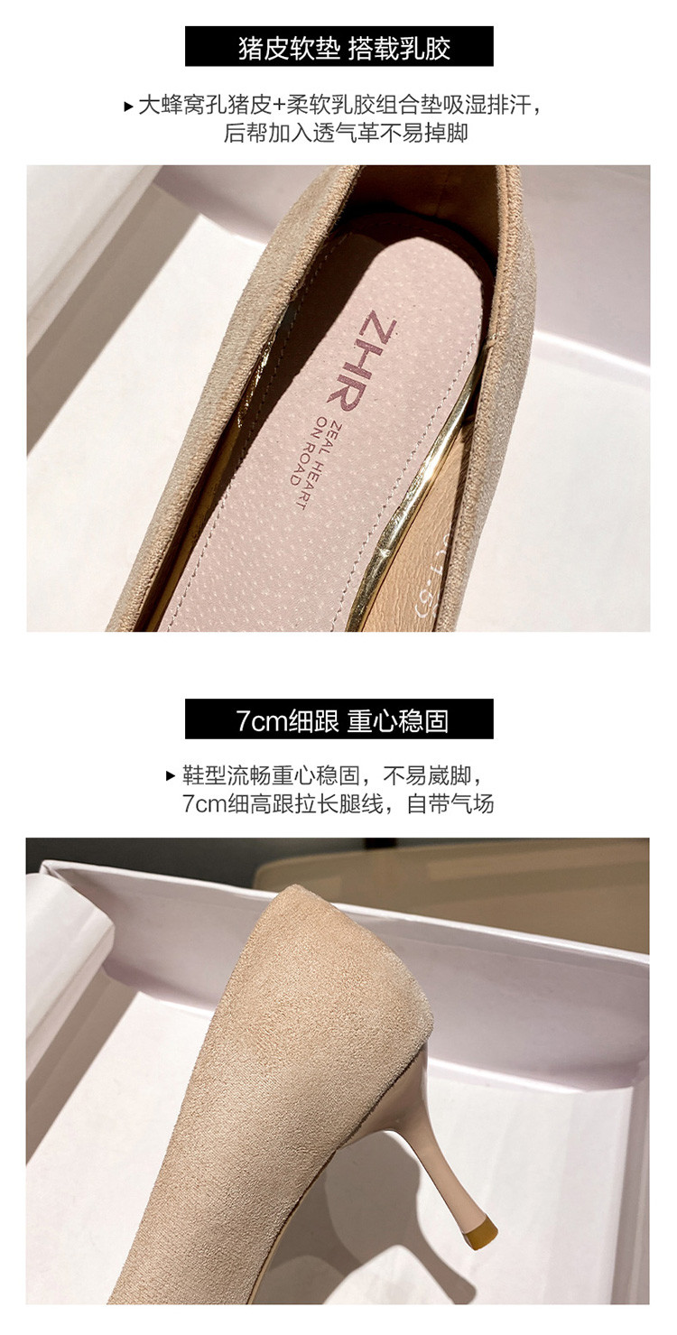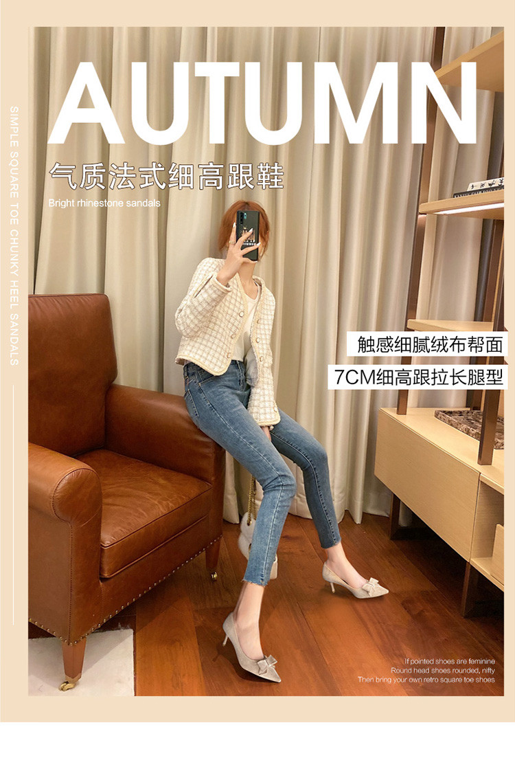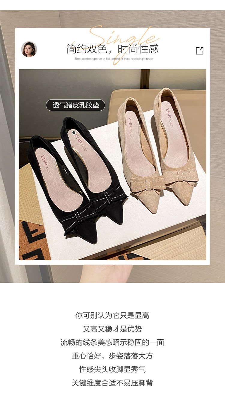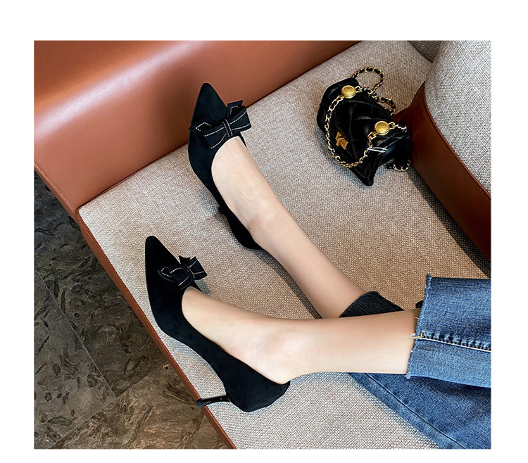 【蝴蝶结】绒面职业通勤鞋婚鞋一脚蹬高跟鞋女细跟鞋子女单鞋女鞋 619200