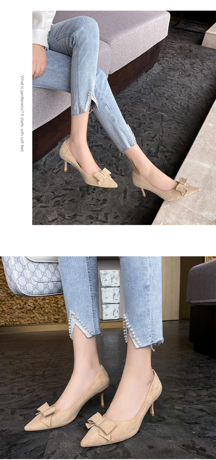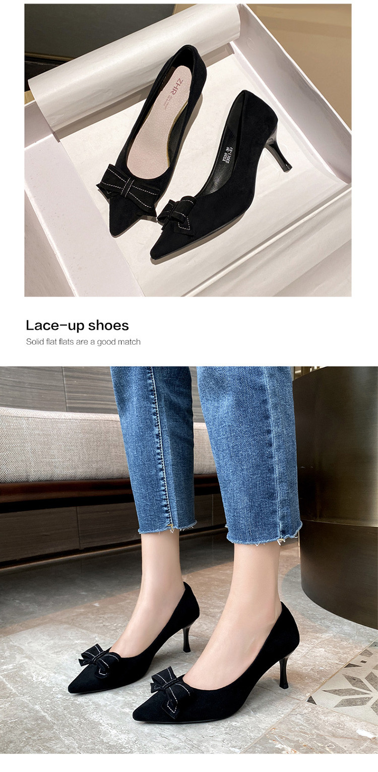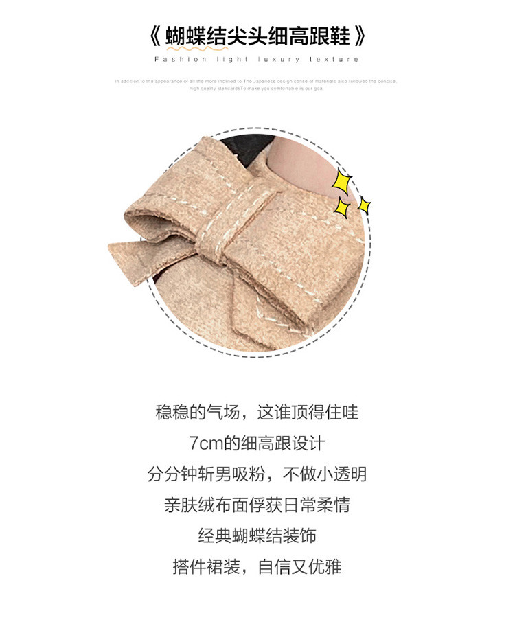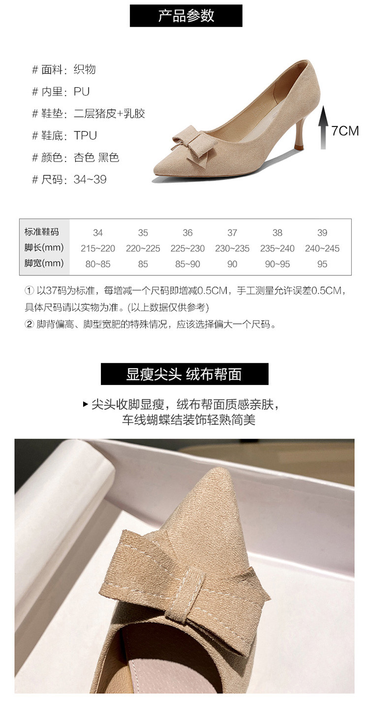 商品名称:【蝴蝶结】绒面职业通勤鞋婚鞋一脚蹬高跟鞋女细跟鞋子女单鞋女鞋 619200