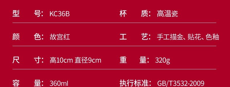 商品名称:FACE×B.Duck 宫廷风陶瓷杯 礼盒装 故宫红 360ml