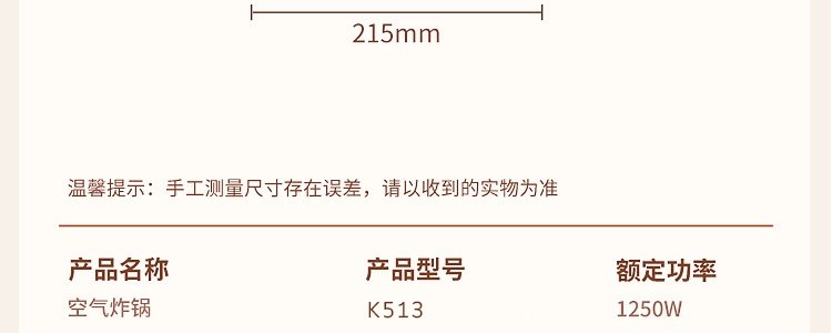 商品名称:创维(Skyworth)空气炸锅 K513 4L