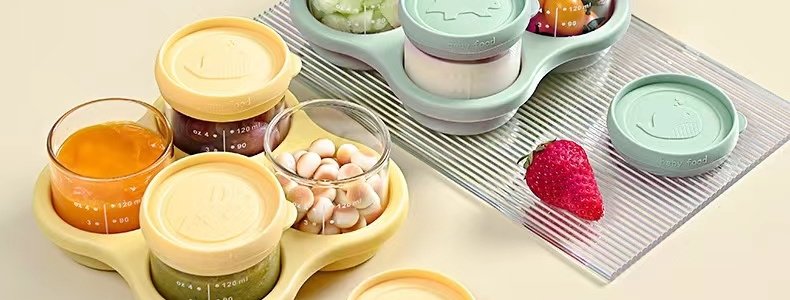 【特价】蓓比舒 宝宝玻璃辅食盒套装 辅食碗*4+底盘*1 荷芯黄
