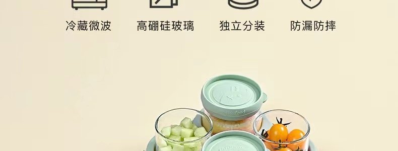 商品名称:【特价】蓓比舒 宝宝玻璃辅食盒套装 辅食碗*4+底盘*1 荷芯黄