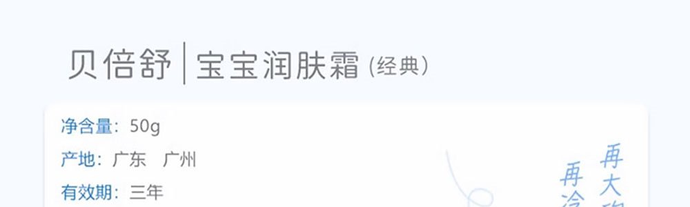 商品名称:贝倍舒(BEIBEISHU)宝宝润肤霜 50g
