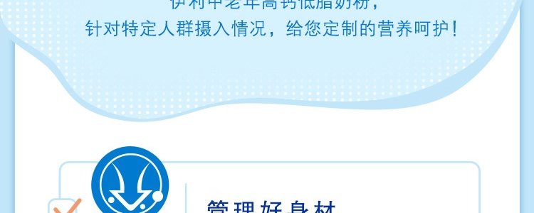 商品名称:伊利 中老年高钙低脂奶粉 850g