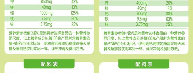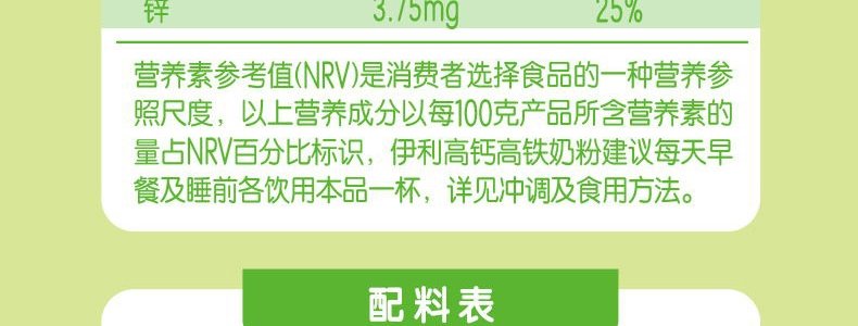 商品名称:伊利 高钙高铁奶粉 900g
