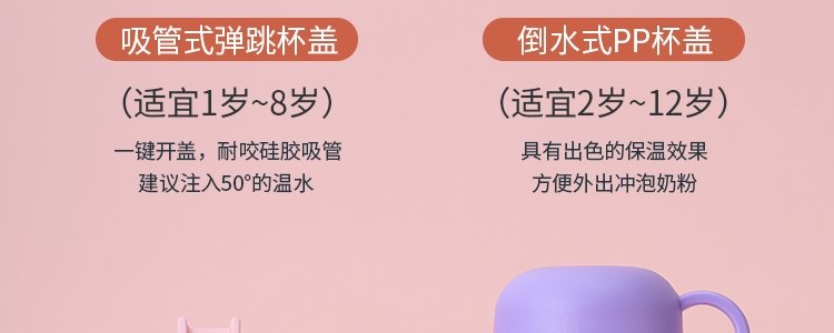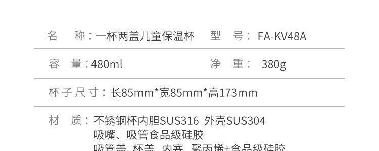 商品名称:Face 一杯两盖儿童吸管保温杯 茱萸粉 480ml(含杯套)