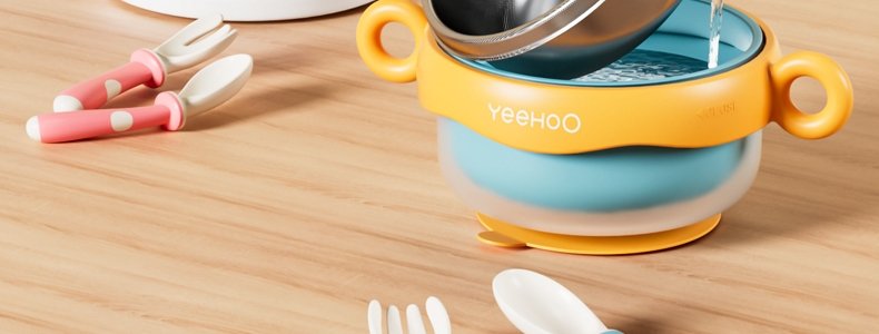 商品名称:英氏(Yeehoo)三叶草注水碗 涧石蓝