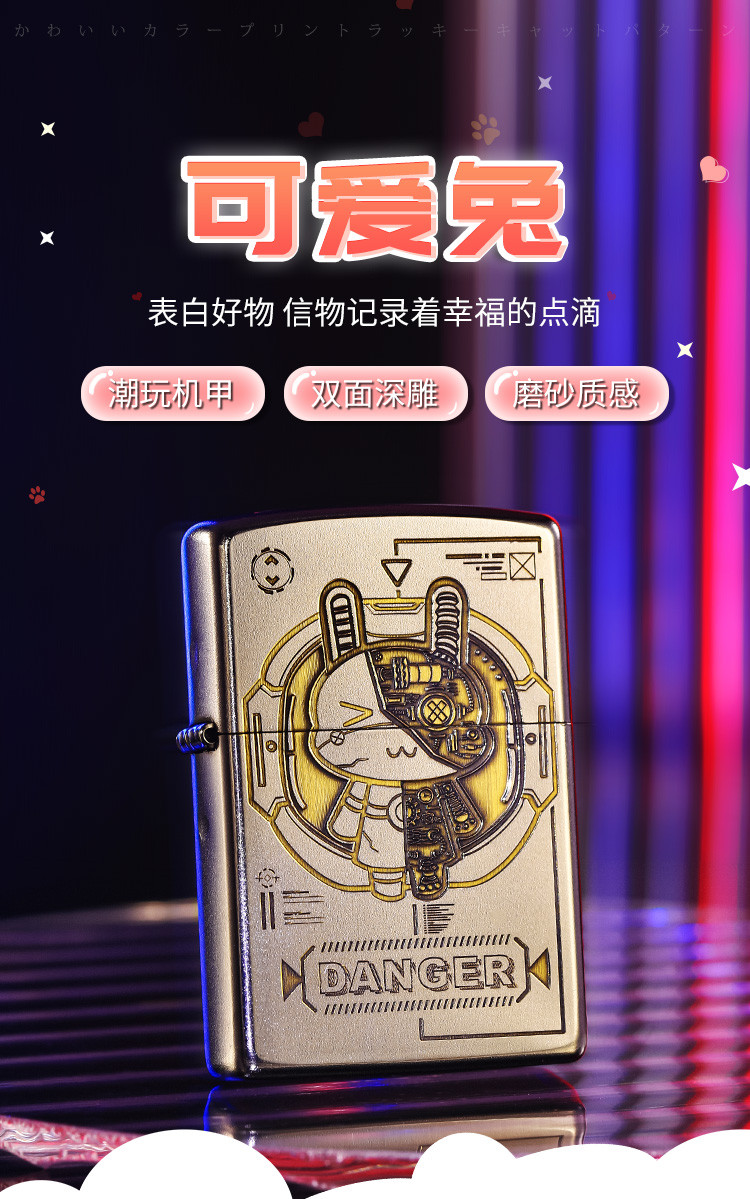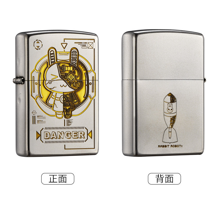 打火机正版煤油防风磨砂深雕双面机械可爱兔实用送男友礼物 629086
