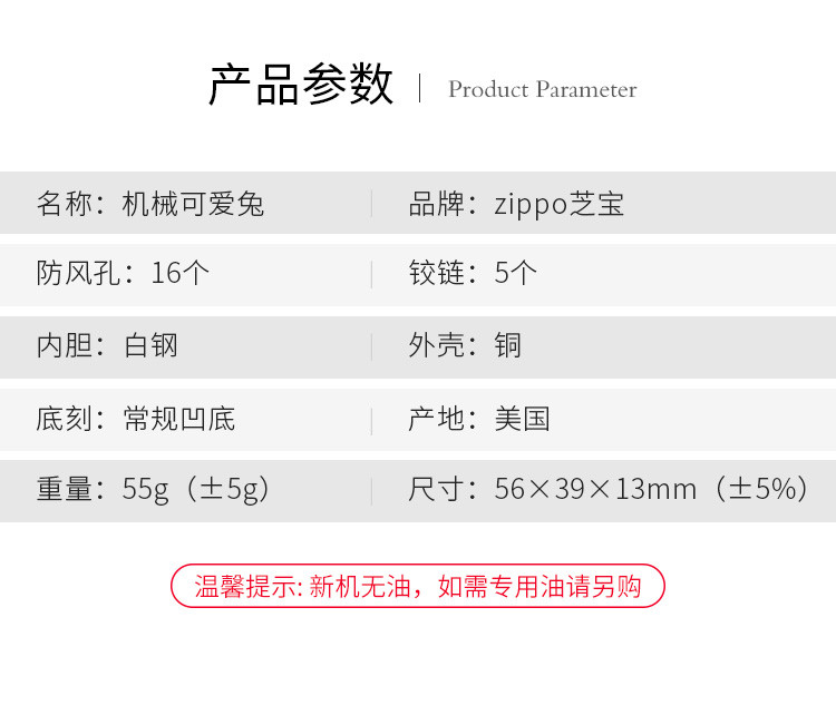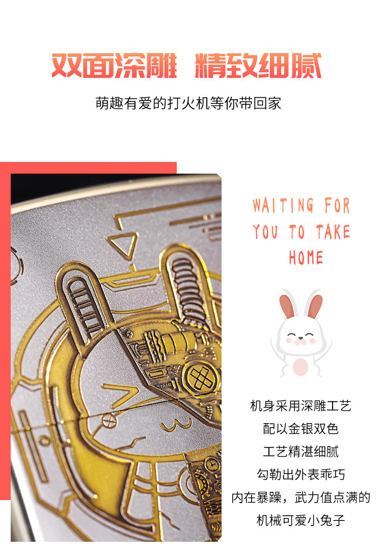商品名称:打火机正版煤油防风磨砂深雕双面机械可爱兔实用送男友礼物 629086
