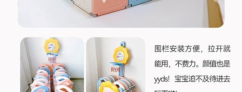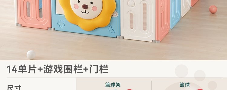 商品名称:BabyGo 太阳狮儿童折叠游戏围栏 14片+1门栏+1游戏栏(送投篮架+篮球)