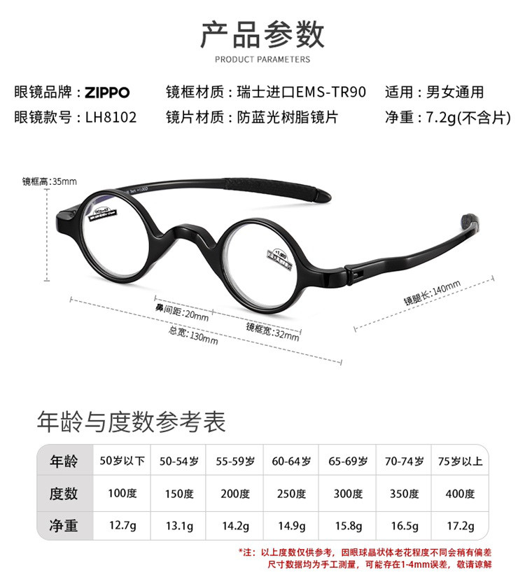商品名称:圆框复古优雅老花镜男女防蓝光高清显年轻女式老花眼镜花镜女士 679198