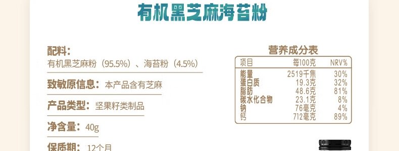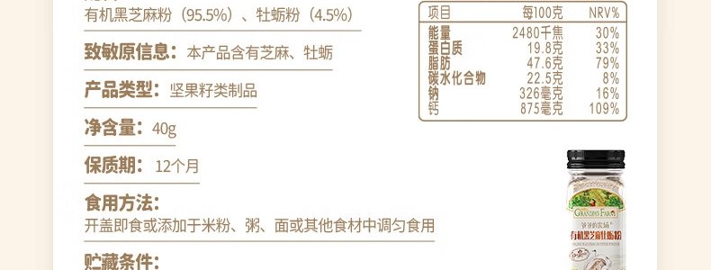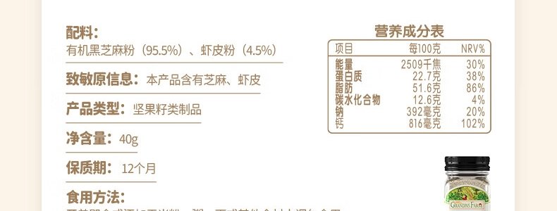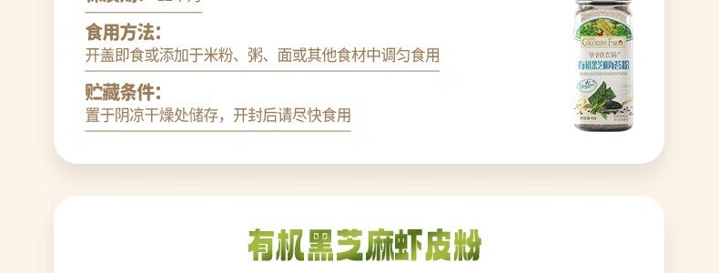商品名称:法国 爷爷的农场(GRANDPA'S FARM)有机黑芝麻虾皮粉 40g