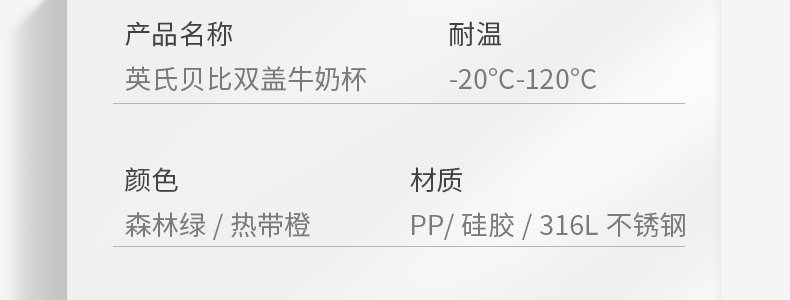商品名称:英氏(Yeehoo)贝比双盖牛奶杯 热带橙