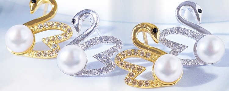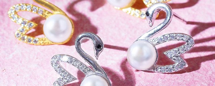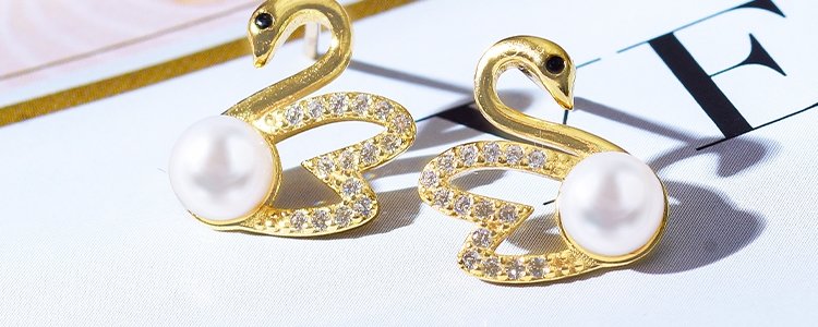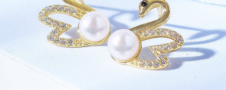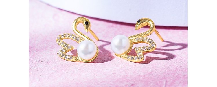 饰瑾美(SHIJINMEI)天鹅淡水珍珠耳钉 银色