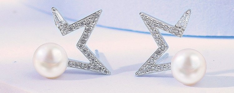 饰瑾美(SHIJINMEI)韩版镂空淡水珍珠耳钉 银色