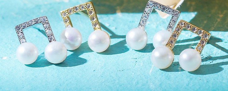 饰瑾美(SHIJINMEI)音符淡水珍珠耳钉 金色
