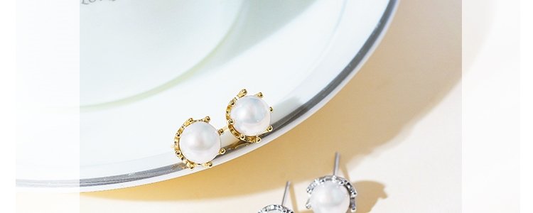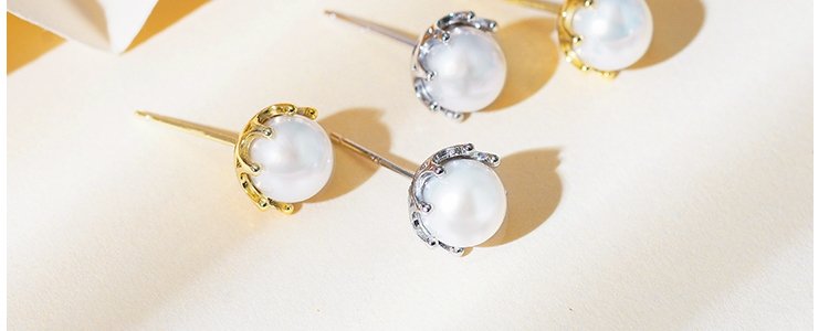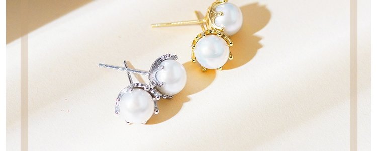 饰瑾美(SHIJINMEI)韩版镂空淡水珍珠耳钉 银色