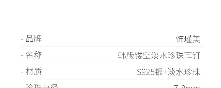 商品名称:饰瑾美(SHIJINMEI)韩版镂空淡水珍珠耳钉 银色