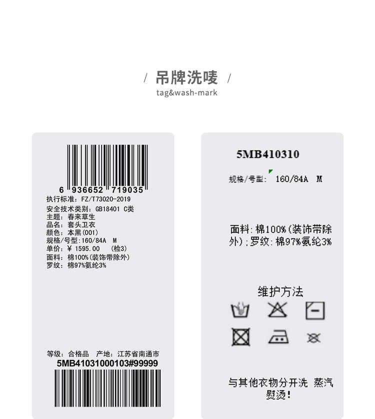 商品名称:春卫衣连帽长袖拼接设计感中长款上衣女 193483