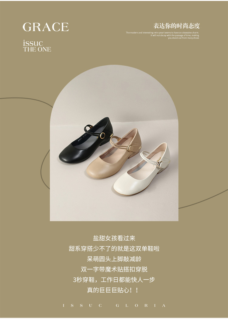 商品名称:【气质搭扣】粗跟通勤鞋女一脚蹬玛丽珍女小皮鞋子女单鞋夏季女鞋 506752