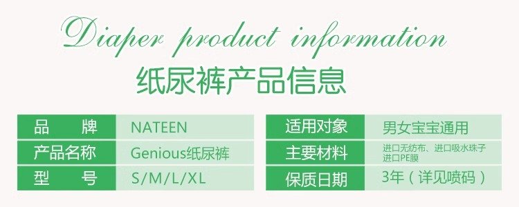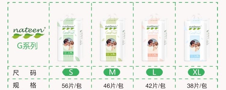 商品名称:比利时 那特恩(nateen)G系列纸尿裤 S56(2-5kg)(买3包赠试用装5片)