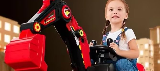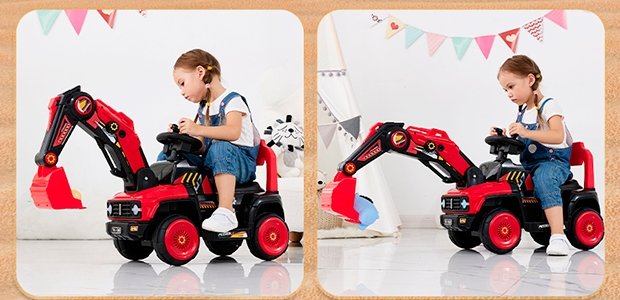 咪哆嘻 儿童半电动手动挖臂挖掘机 中国红