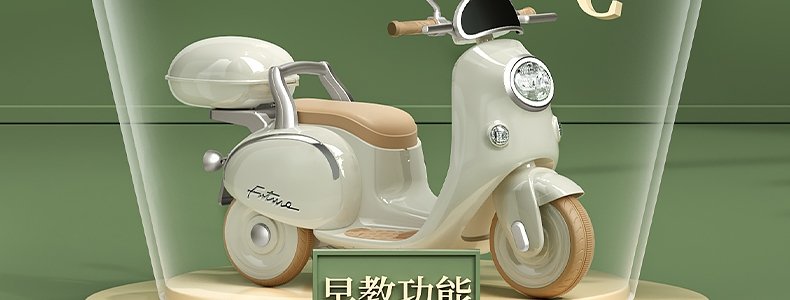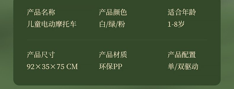 商品名称:迪乐漫妮 儿童音乐蓝牙遥控电动摩托三轮车 粉色双驱
