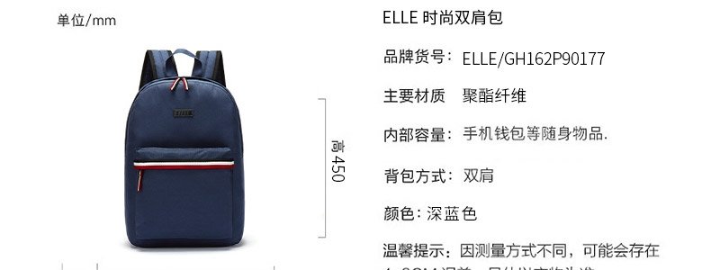 商品名称:法国 她(ELLE)时尚双肩背包 深蓝色