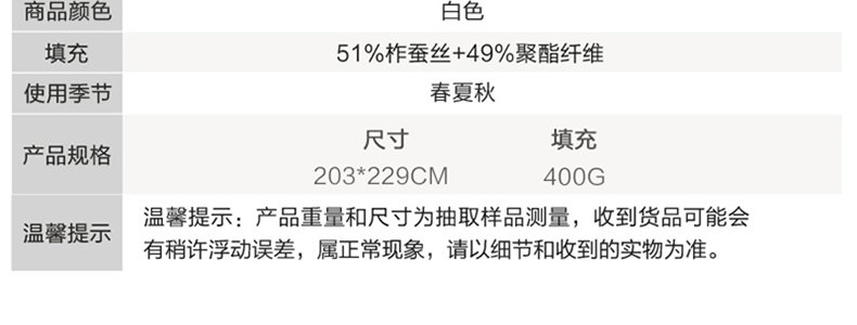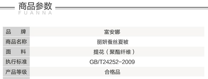 商品名称:富安娜 丽妍蚕丝夏被 203*229cm