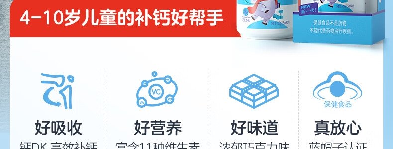 商品名称:养生堂成长快乐多种维生素钙咀嚼片(巧克力味)80片