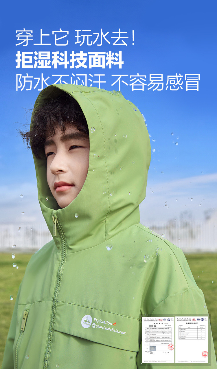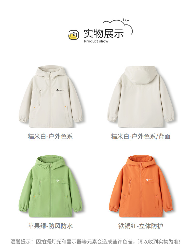 商品名称:防风透湿户外儿童外套男童春秋装大童连帽防护服青少年休闲童装 871301